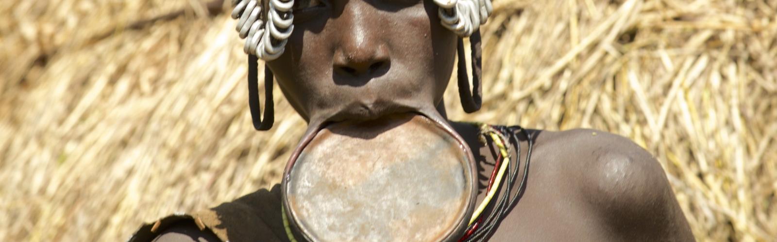 The Mursi people, who live in an almost inaccessible area between the Mago and Omo rivers, are famous for the clay lip-plates traditionally worn by women. There is much controversy surrounding the origins of these lip-plates with theories ranging from disfigurement to discourage slave-raiders to a sign of beauty. Both men and women of the Mursi tribe practise scarification and cut their hair very short, often with patterns shaved into it. Men traditionally wear only a blanket tied at one shoulder, and women, a similarly-fashioned goat skin. The Mursi have a reputation for being aggressive and the men carry a Donga (large stick) for fighting. Ceremonial fights are also performed. Cattle are the Mursi's most prized possession. They are used in virtually every significant social relationship, most notably marriage, where they are used as a dowry, paid to the bride's father. They provide milk and blood, which form an integral part of the Mursi diet and the Mursi even name themselves after the colour of their favourite cattle.